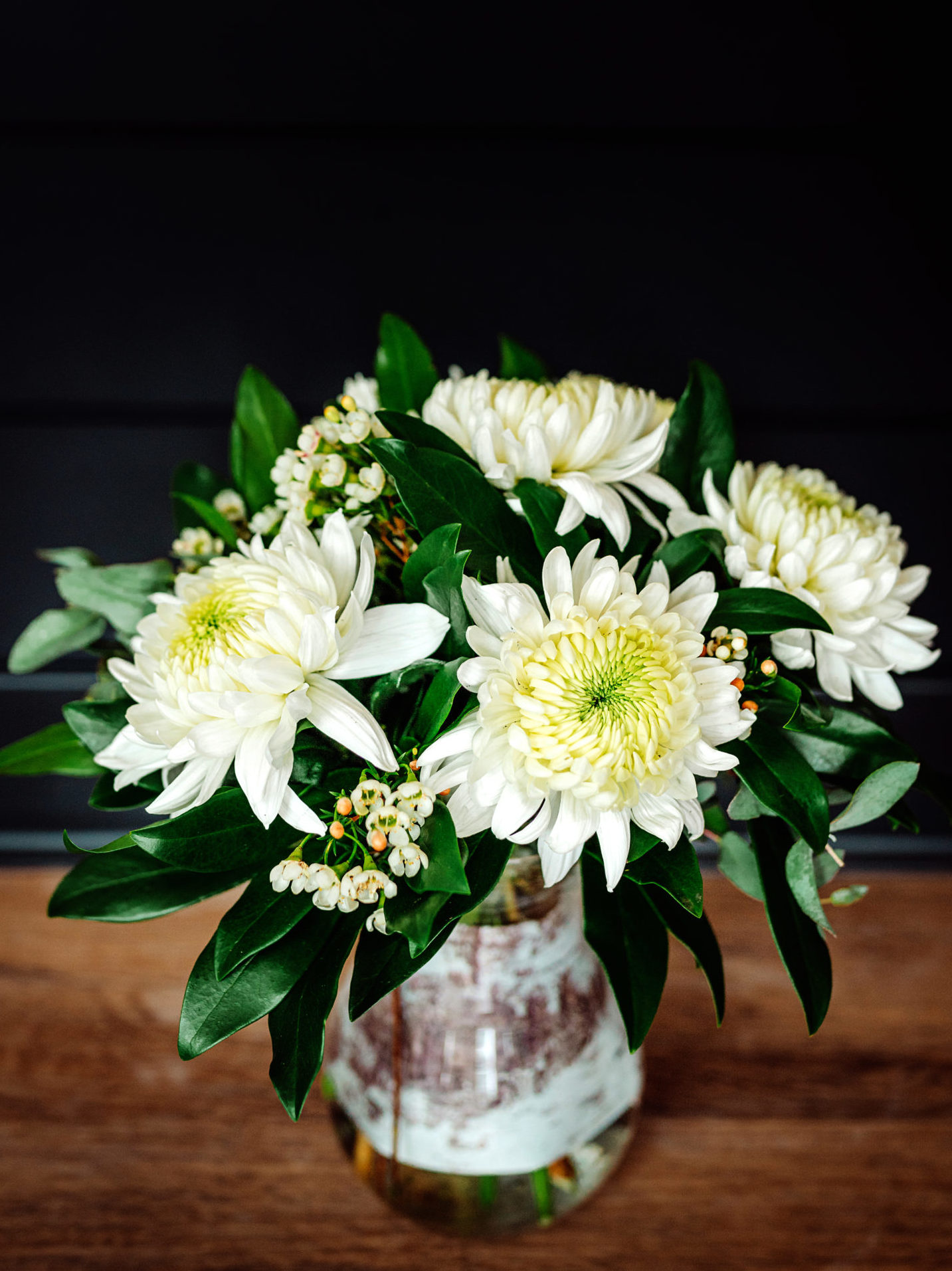 Timeless white florals make a welcome addition to anyone’s day. Brighten things up with a beautiful mix of white flowers and just a delicate touch of greenery, all designed in a vase.